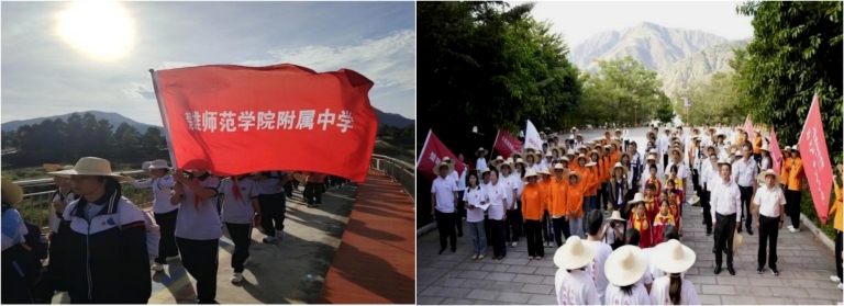 早晨8:00,附中师生精神饱满、整齐列队,在楚雄师范学院新校区集合点统一乘车出发。抵达江边乡后,附中师生被编入第二方队,随即投入“重走长征路”徒步体验环节。大家沿着红军曾经走过的道路,迈步向前,亲身体验革命年代的艰辛与坚定。
