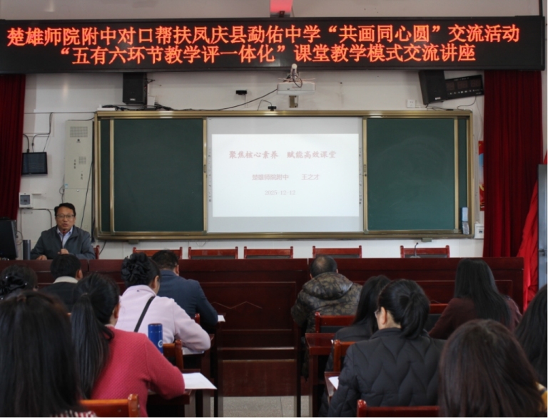 为深入贯彻落实云南省“省管校用”对口帮扶工作部署,推动优质教育资源共享,促进城乡义务教育高质量发展,楚雄师院附中教师一行15人于12月11—13日赴临沧市凤庆县勐佑中学开展了以“共画同心圆”为主题的系列交流帮扶活动,勐佑中学领导班子及全体师生对师院附中教师团队的到来表示热烈欢迎。