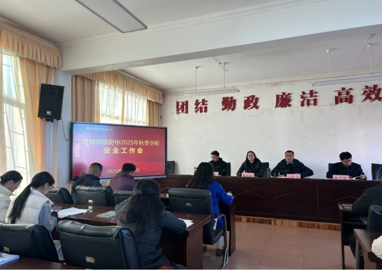 2025年12月26日下午,楚雄师范学院附属中学在学校大会议室召开了2025年秋季学期安全工作会议。会议由学校党委书记王红力主持,学校领导、年级主任、班主任及学校管理人员参加了此次会议。