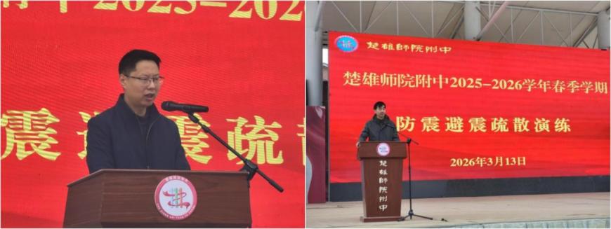 为切实增强师生防震减灾意识,提升应急避险与自救互救能力,2026年3月13日,楚雄师院附中组织开展防震避震疏散演练,特邀楚雄州地震局卢晓林局长做现场指导,全体师生按规定要求有序完成防震避震疏散演练。